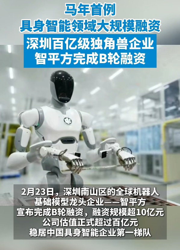 ● 深圳首个百亿级具身智能独角兽智平方完成B轮融资。
