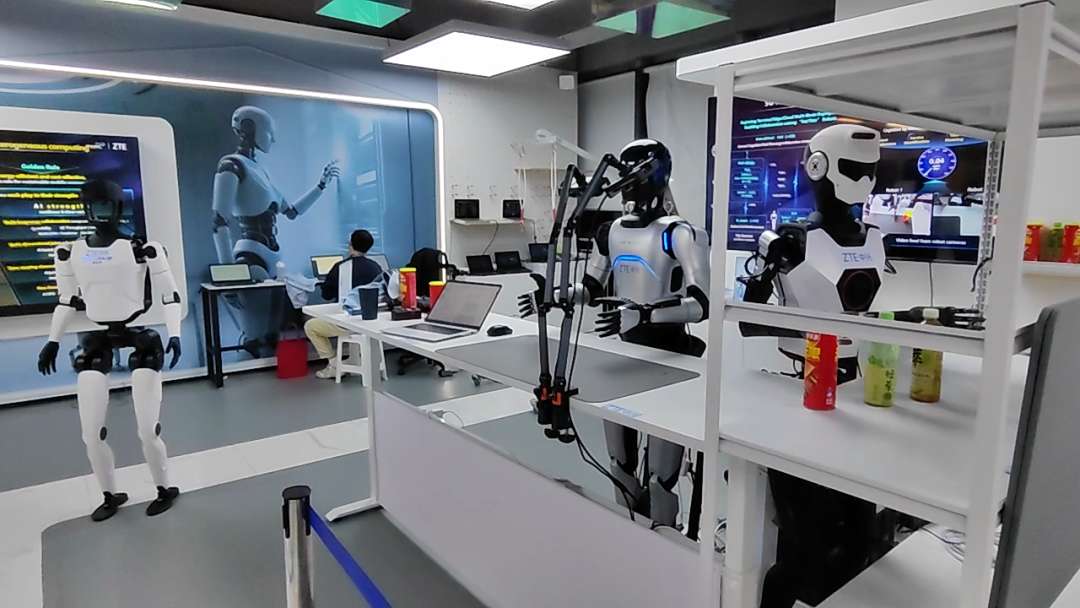 中兴通讯方面还表示,具身智能的繁荣需要产业链的开放协作。除了技术开源,公司还积极参与国家及行业标准制定,并联合产业伙伴进行场景创新。在2025年世界移动通信大会上海展期间,中兴就展示了基于5G-A技术、可统一调度不同品牌机器人的群智协同场景,体现了其技术底座的开放性与协同能力。未来将继续依托其在“连接+算力”领域的深厚积累,以开源开放的态度,与产学研各界伙伴携手,共同攻克具身智能规模化应用中的挑战,推动这项变革性技术走进千行百业,为人机共生的智能未来夯实基础。(图片由中兴通讯提供)