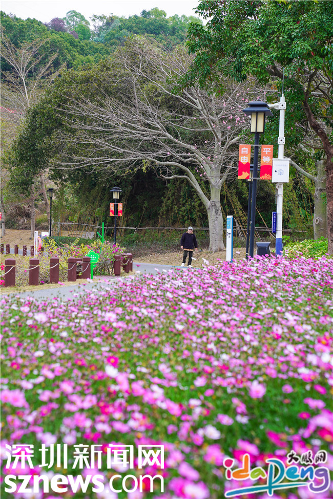 深圳新闻网2026年2月28日讯(记者 林宏松)春回大地,万物复苏。连日来,随着气温回升,大鹏禾塘山水公园迎来最佳赏花期,粉白、淡紫、嫩黄的花瓣缀满花田,将公园装扮成一片绚烂的彩色海洋,吸引众多市民游客前来赴一场与春天的约会,感受春日限定美好。