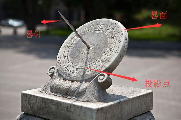 一天当中,阳光照射下,物体的影子会不断地改变方向。日晷通常由晷针和晷面组成,其原理就是利用太阳的投影方向,人们可以通过投影点在晷面上的位置来测定并划分时刻。