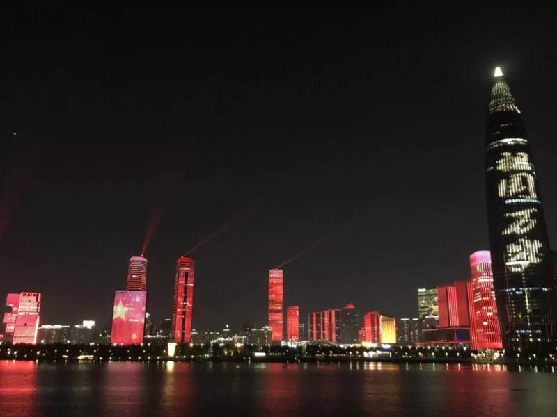 昨天晚上,大家期待已久 深圳中心区灯光表演 一亮相就刷爆了朋友圈 你去看了吗?! 其实!南山也有灯光秀~ 在人才公园就能看 小编把攻略都给你准备好了哟~ 水光潋滟 微风徐徐 小编真的, 被惊艳到了! 看,那跃动的水母 建筑倒映在水里 五光十色, 小编已经陶醉 在这初秋的夜里! 你们醉了吗? 而今晚最大的彩蛋, 莫过于——“祖国万岁”! 别眨眼 还有一大波美图! 随拍都是大片的节奏啊 “辉煌新时代—魅力南山”以春天觉醒为故事开篇,用动态渐进和虚拟再现的艺术手法,有节奏地演绎南山的时代变迁和文化风貌,极具观赏性,是城市光艺术与智能科技深度融合的创新力作。主要分为五个篇章: 第一篇章:生机勃勃,生态南山 第二篇章:动感奇境,欢乐南山 第三篇章:古城特色,人文南山 第四篇章:创新发展,科技南山 终篇:祝愿祖国更加美好