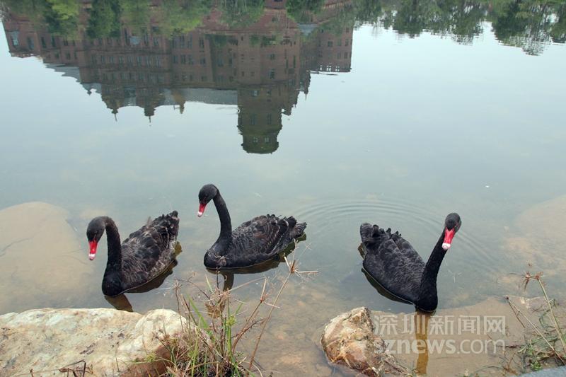 维罗纳,三只黑天鹅丝毫不怕人,摆好姿势等你拍