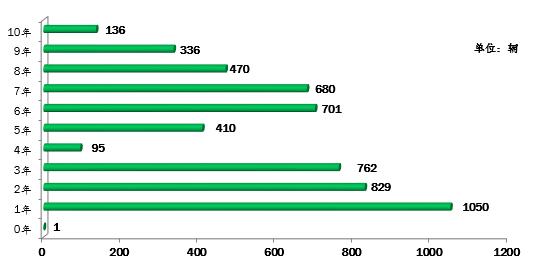 ▲行业教练车车龄统计图(注:根据《机动车强制报废标准规定》第五条规定:小型教练载客汽车使用10年)