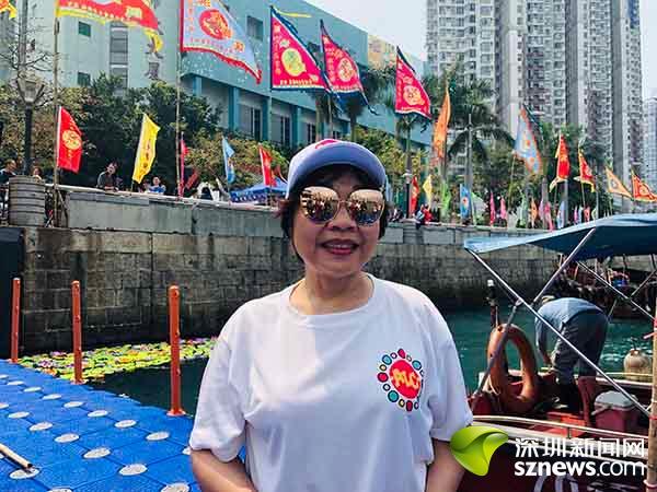 鸭脷洲洪圣传统文化节以前比较传统,过去几年因不是周末,来的人不是很多。过去5年增加了放水灯、龙舟拜会、巡游等,非常热闹。如今主办方把活动定在星期日,刚好又在全国两会后,她也可以到现场来参与。市民参与度也高,当天本地社区义工,股东会成员,街坊邻居都参与进来了。大家一起合作,看到他们这么团结,她非常开心。希望更多的海内外的朋友可以来现场感受香港这一传统文化。