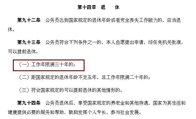 深圳商报2019年5月21日讯 2019年6月1日起,修订后的《中华人民共和国公务员法》将正式实施,新公务员法的一大亮点是:工作满30年可申请提前退休!