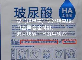 标签标识是化妆品的“简历”,根据国家相关法规的要求,标签上有很多强制要求标识的信息,除了大家熟悉的产品名称、生产企业、保质期、净含量外,还有成分列表等。因此可通过查看成分列表来判断产品功效,比如透明质酸钠是保湿的,烟酰胺是美白的,洋甘菊是舒缓的等。此外,还可识别出易引起皮肤过敏的成分,比如甲基异噻唑啉酮、甲醛及甲醛缓释体等。较为常见的甲醛缓释体防腐剂有咪唑烷基脲、双(羟甲基)咪唑烷基脲、DMDM乙内酰脲等。敏感肌肤或面膜使用频次较高时,建议通过查看产品成分列表避开含有以上易致敏成分的面膜产品。