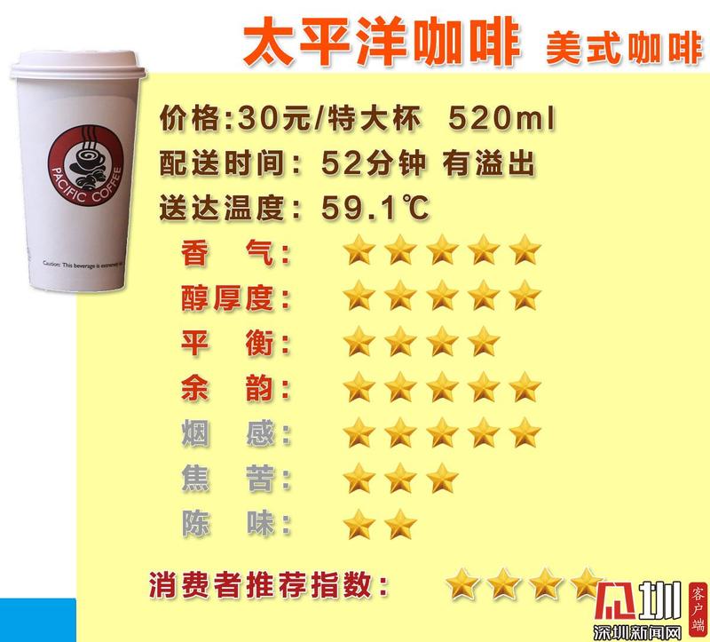 整体评价:咖啡容量差距较大,太平洋咖啡有溢出问题