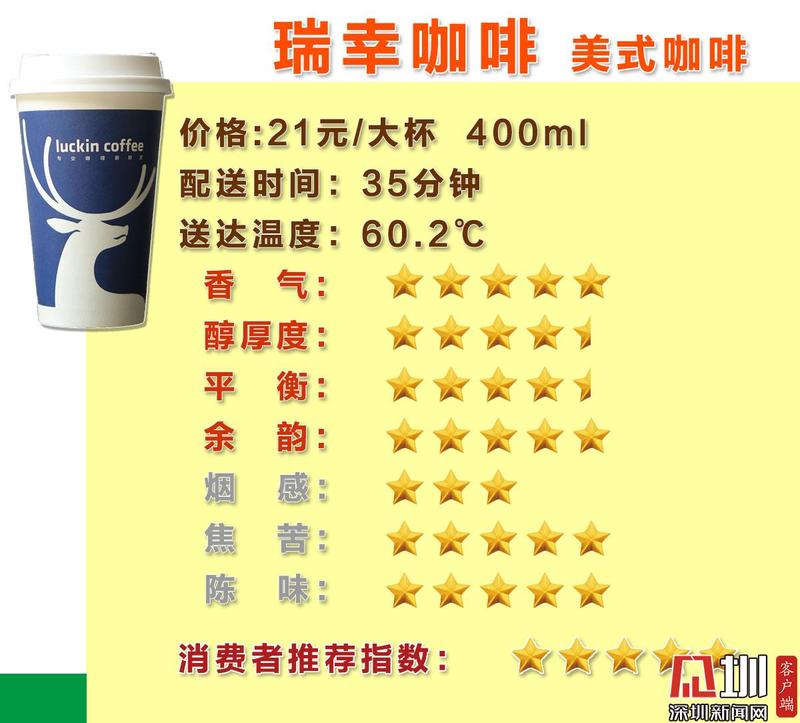 瑞幸咖啡5星好评,星巴克收获4星半