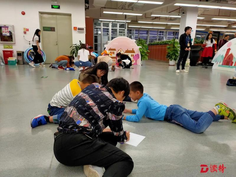 分成五个组的小朋友们,成为了格林童话里的白雪公主和灰姑娘,海底总动员中的尼莫和蓝唐王鱼多利,玩具总动员中的胡迪警长和巴斯光年等等,极富个性的角色分配让孩子们兴奋不已,他们开心的自我介绍,交换书籍,迅速地和小伙伴们打成一片,建立了各自童话主题角色陪伴一整晚的小组。然后开心的在图书馆讲解员姐姐的引导下开始了揭秘图书馆的巡游。一圈下来,30个家庭对图书馆的日常管理工作有了全面的认识,知道了每个职业平凡背后包涵的伟大。