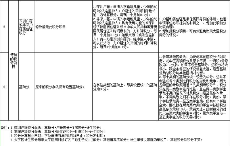 (3)非深圳户籍儿童父母为深圳户籍或双方有居住证(或一方有居住证另一方为深圳户籍)由原来加20分调整为2分;