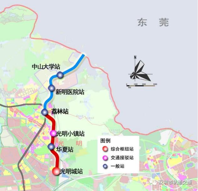 6号线支线二期工程自翠湖站(原荔林站)至光明城站,线路长度4.9公里(地下线4.25公里、地上线0.65公里),采用B型车6辆编组;建设工期4年。