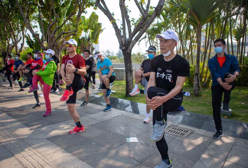 今天的登山活动,其实从莲花山西门的跑步开始的。不到十分钟,王石等就达到了莲花山顶,随后从山顶下山,跑步3.5公里到达莲花山与市民中心的连廊平台,在此完成拉伸后,整个登山和跑步活动完美结束。