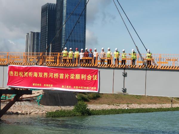 前海合作区听海双界河桥工程首片钢箱梁顺利合拢
