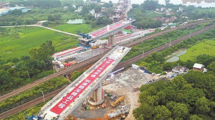 赣深高铁“卡脖子”工程打通 跨京九铁路和205国道特大桥成功转体