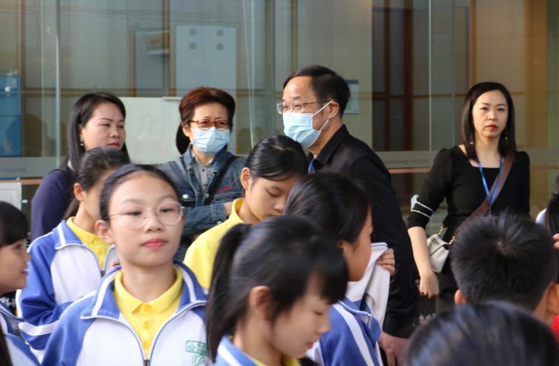 ▲罗湖区教育局局长殷刚(中)现场观看孩子们的表演并给予充分肯定。