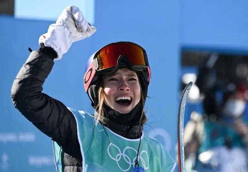 2月8日上午,中国选手谷爱凌出战北京冬奥会首钢滑雪大跳台决赛场,以两轮188.25分的成绩斩获金牌,并成为这个项目的首位冬奥会女子冠军。