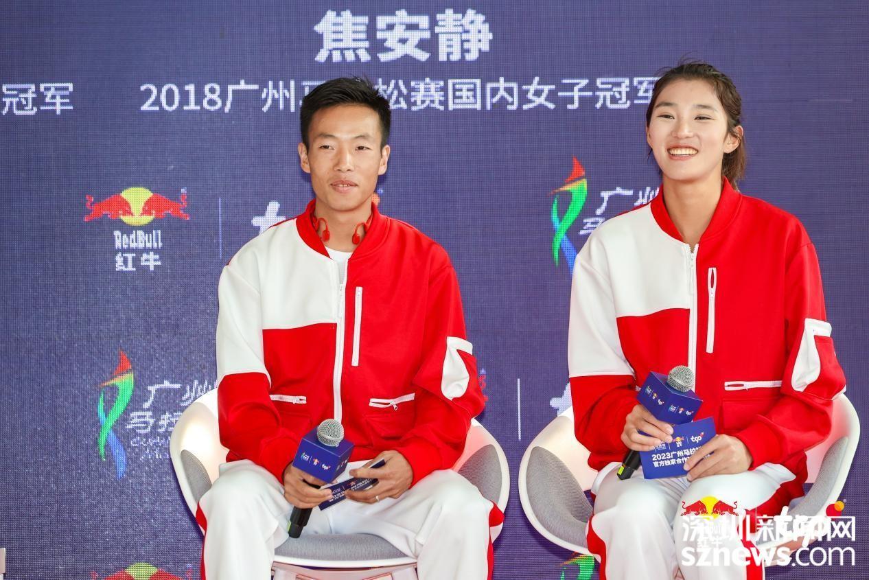 发布会现场有幸请到了曾获2018、2021、2023三年厦门马拉松赛国内女子冠军、2018广州马拉松赛国内女子冠军焦安静女士,作为今年的夺冠热门选手,她在现场分享了自己的“230目标”和冲金宣言:“230代表我希望这次能在2小时30分内完赛。今年厦马我成功回到233水平,但这还不是我的实力巅峰,今年广马我希望超越自我,实现230目标,同时冲击2023广州马拉松赛国内女子冠军。我希望能让大家意识到,女性有无限可能。”