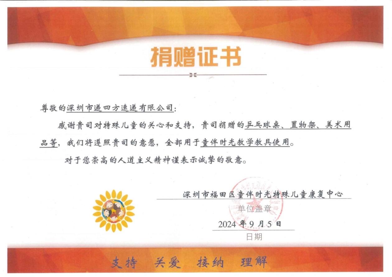 深圳新闻网2024年9月9日讯(记者 董非)9月5日,递四方全球快递网络(GFN)事业部与悦尔优库携手,在深圳福田区特殊儿童教育机构“童伴时光”举办了一场意义深远的捐赠仪式。此次活动的核心目标是促进特殊儿童教育水平的提升,并为这些孩子创造一个更加优越的学习环境,同时激发社会各界对公益活动的广泛参与。