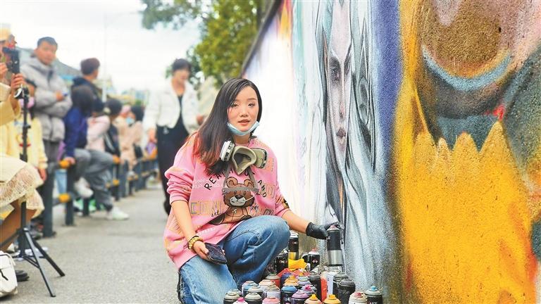 “目前已经完成了7个角色的创作,我现在正在绘制电影里的另一个人物敖光,后面还会根据情况再继续画其他的角色。”记者在现场看到,上芬社区居民、自由职业者彭丹正拿着喷漆瓶在墙上挥洒自如。经过不断上色、调整,一个帅气威严的东海龙王敖光形象逐渐诞生了。