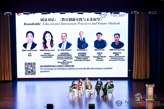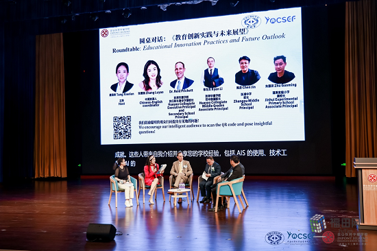 在由首都师范大学唐晓岚教授主持、昆山杜克大学张露瑶教授担任中英协调的“教育创新实践与未来展望”圆桌论坛中,狄邦华曜学校执行校长Dr.ReidPrichett、初中副校长李龙龙,张浦中学校长陈进,瑾晖实验小学副校长朱国明等嘉宾,围绕AI教育实践与校长角色转变两大核心议题展开深度交流。