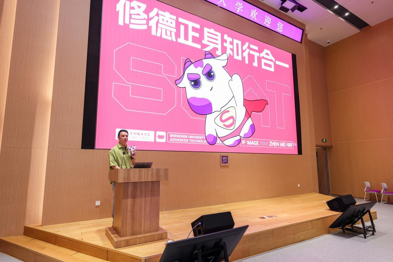 当天,深圳理工大学发布了第三个文化IP“圳美牛”。据介绍,“圳美牛”的意涵十分丰富,形象既来自圳美牛场的奶牛,也呼应了深圳拓荒牛精神,设计上运用了许多深圳理工的元素,打造成为一只坚毅、求知、好奇的“科研牛”。“‘圳美牛’不产奶,生产的是改变世界的可能,因为最珍贵的营养,永远来自科技创新的牧场。”设计师表示。