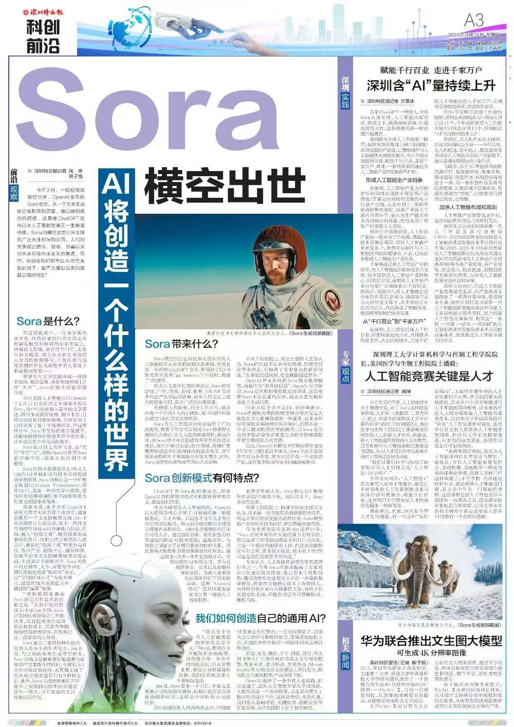 图18:2024年3月19日,策划推出“科创前沿”专版,当期刊发报道《Sora横空出世 AI将创造一个什么样的世界》。