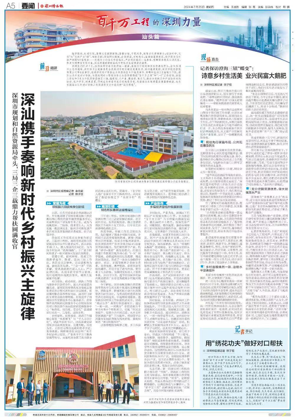 图5:“百千万工程的深圳力量”专栏,刊发的报道《深汕携手奏响新时代乡村振兴主旋律》。