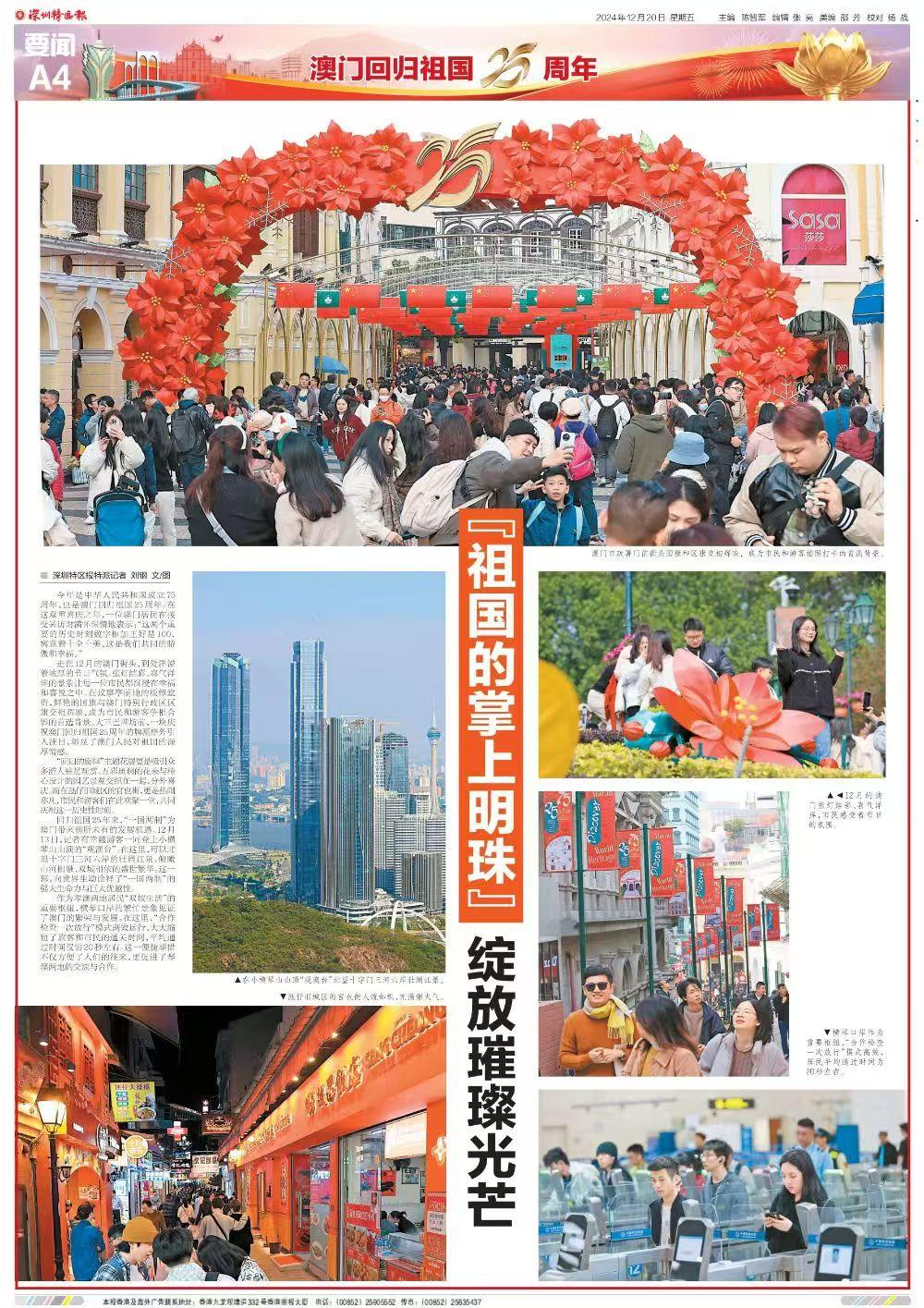图6:澳门回归祖国25周年当日,推出图片专版《“祖国的掌上明珠”绽放璀璨光芒》。