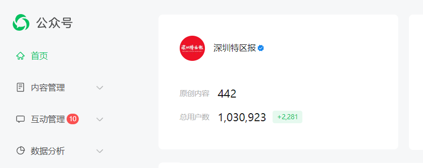 图10:深圳特区报官方微信、微博、头条号的粉丝数据。