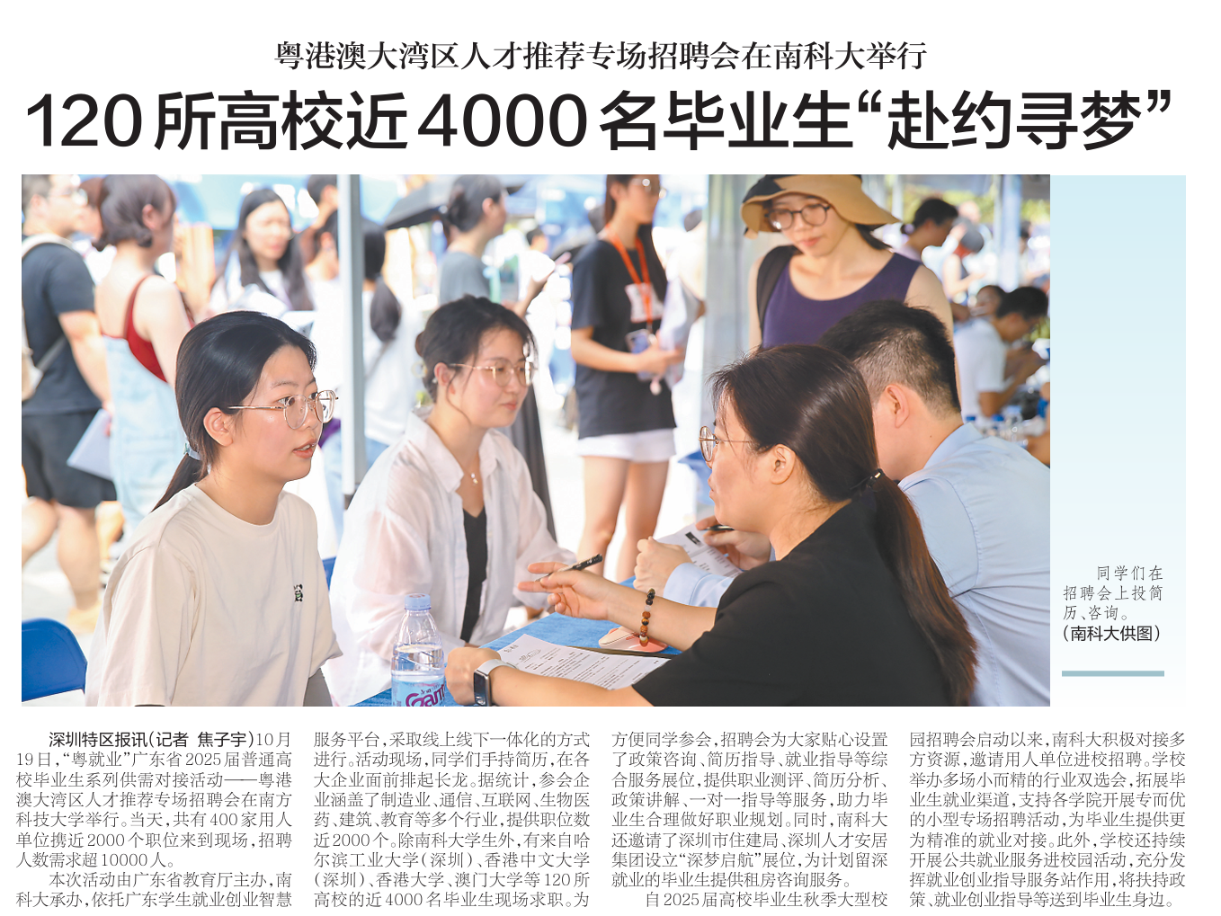 图16:2024年10月21日,刊发报道《粤港澳大湾区人才推荐专场招聘会在南科大举行 120所高校近4000名毕业生“赴约寻梦”》。