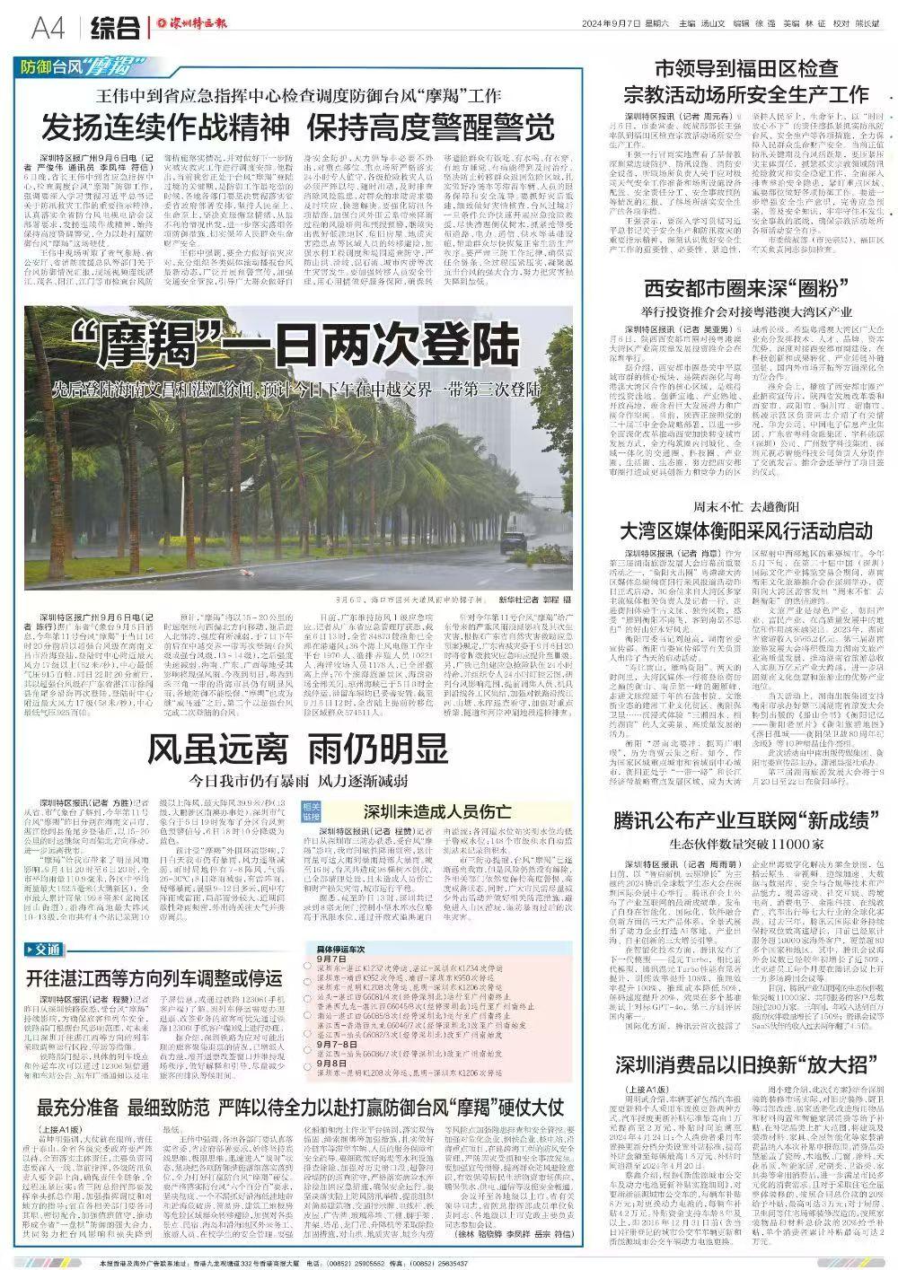 2024年9月,第11号台风“摩羯”袭击深圳。台风登陆前后,深圳特区报记者始终及时向外界传达台风信息,守护市民生命安全。