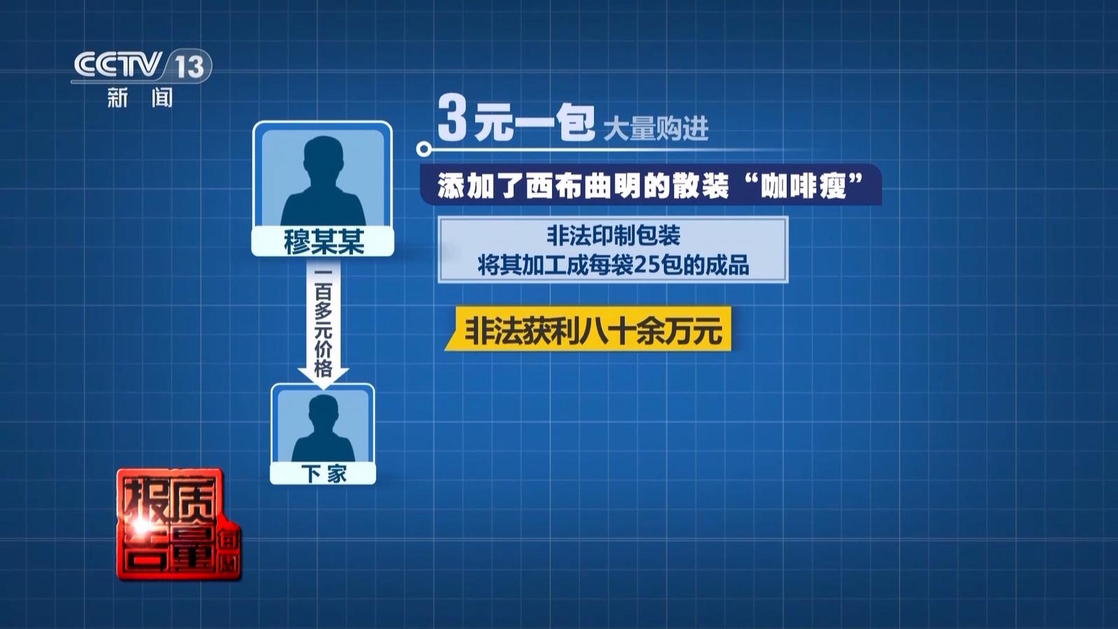 调查至此记者发现,所谓能减肥的神奇咖啡就是在这样的黑窝点生产出来的。为了牟取暴利,犯罪嫌疑人闫某某和张某某以低价非法购进添加有西布曲明的劣质咖啡原料,自行灌装后,以1元左右的批发价销售给穆某某等中间商。经过中间商二次包装后,网络上所谓有奇效的各式减肥咖啡就被生产了出来,最后以600到800元不等的价格销售给全国不知情的普通消费者。