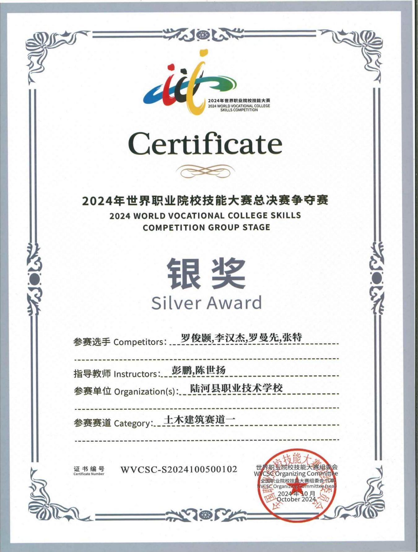 深信院指导陆河职校获得2024年世界职业院校技能大赛总决赛争夺赛银奖。