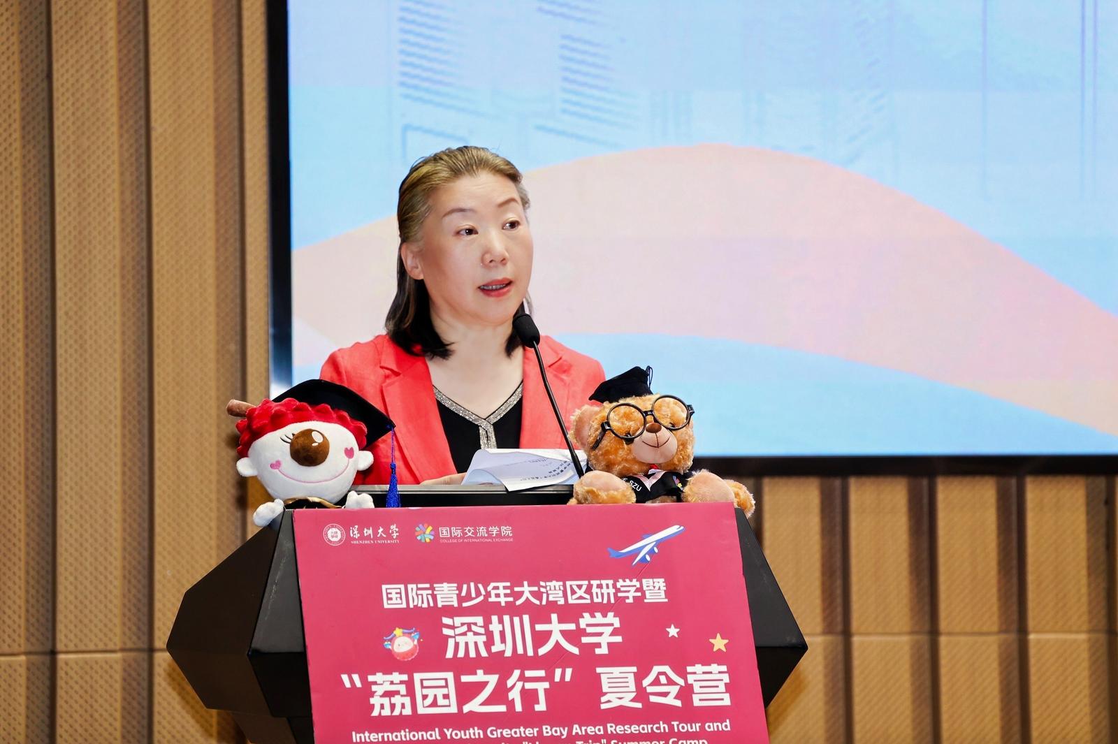 深圳大学国际交流学院副院长郑捷、深圳大运留学基金会秘书长陆林先后致辞,对远道而来的营员表示热烈欢迎,寄语大家在夏令营中收获知识与友谊。