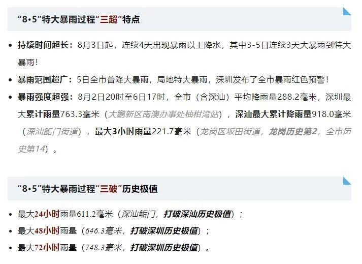 ● 深圳“8·5”特大暴雨刷新三项暴雨记录。