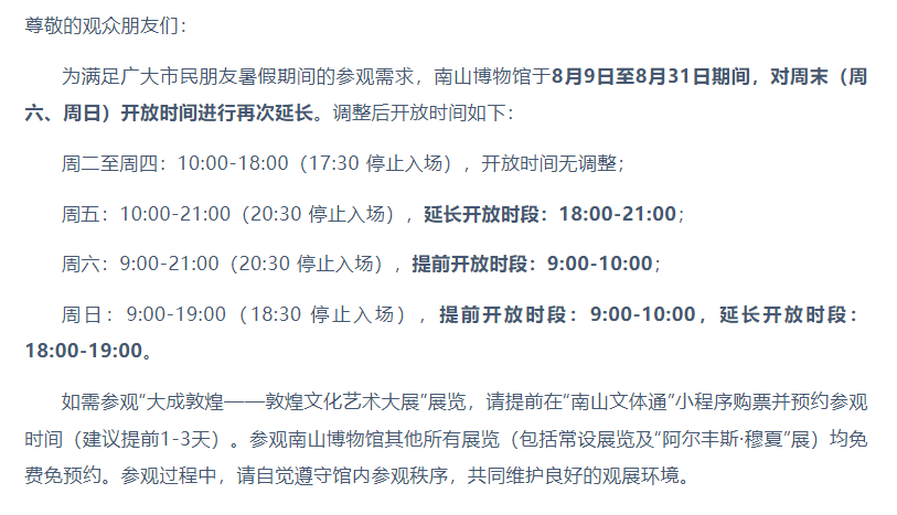 ● 南山:南山博物馆暑假期间再次延长开放时间。