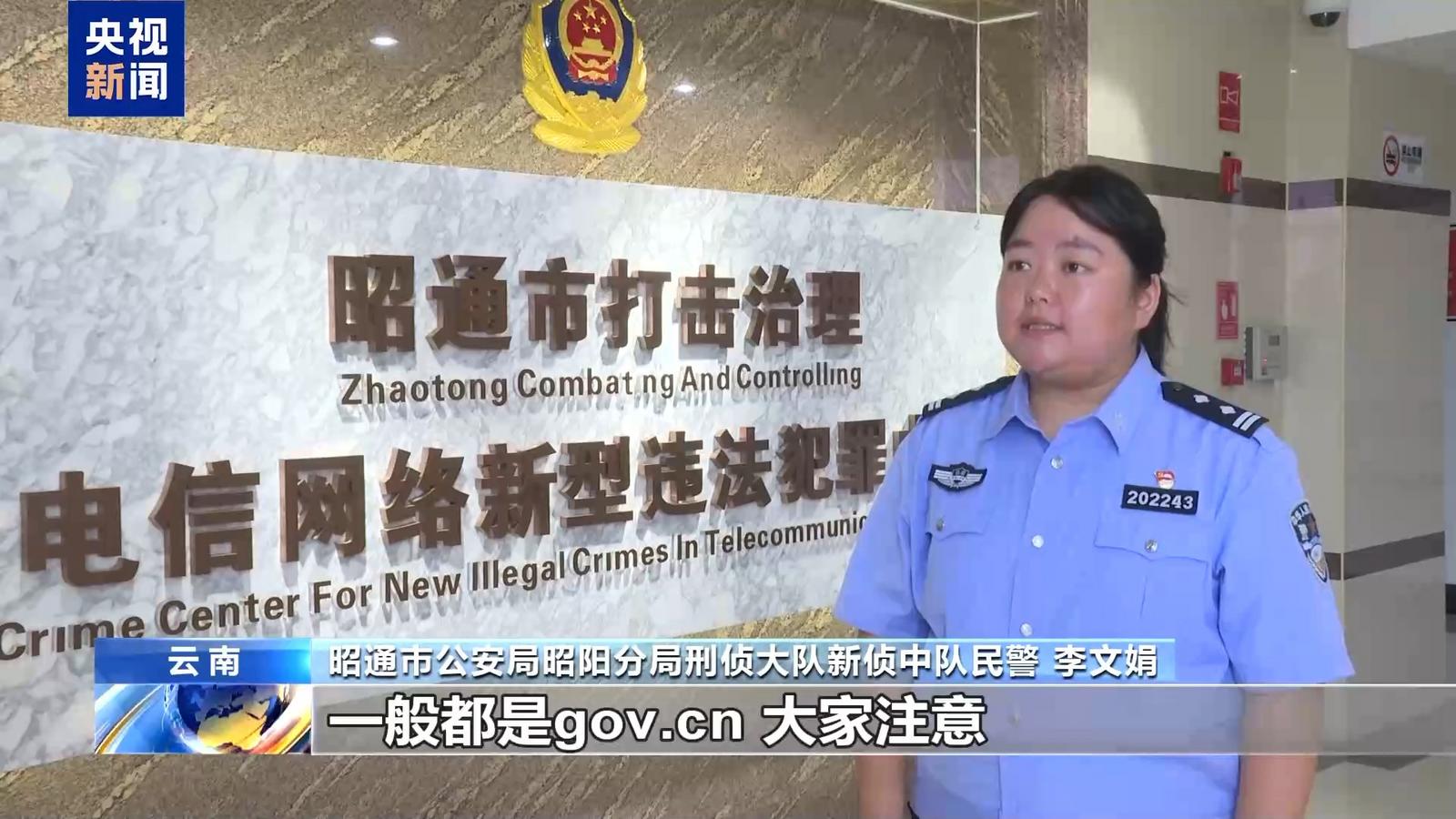 昭通市公安局昭阳分局刑侦大队新侦中队民警 李文娟:第一,查来源,正规的信息都是通过政府的官方平台发布,凡是带有链接的私人信息一律删除。第二,看域名,政府官方网站的后缀一般都是gov.cn。第三,敏感信息拒签收,涉及个人信息,如姓名、身份证号码、银行卡号、密码、验证码,一律不提供,同时,不能开启屏幕共享和人脸识别。