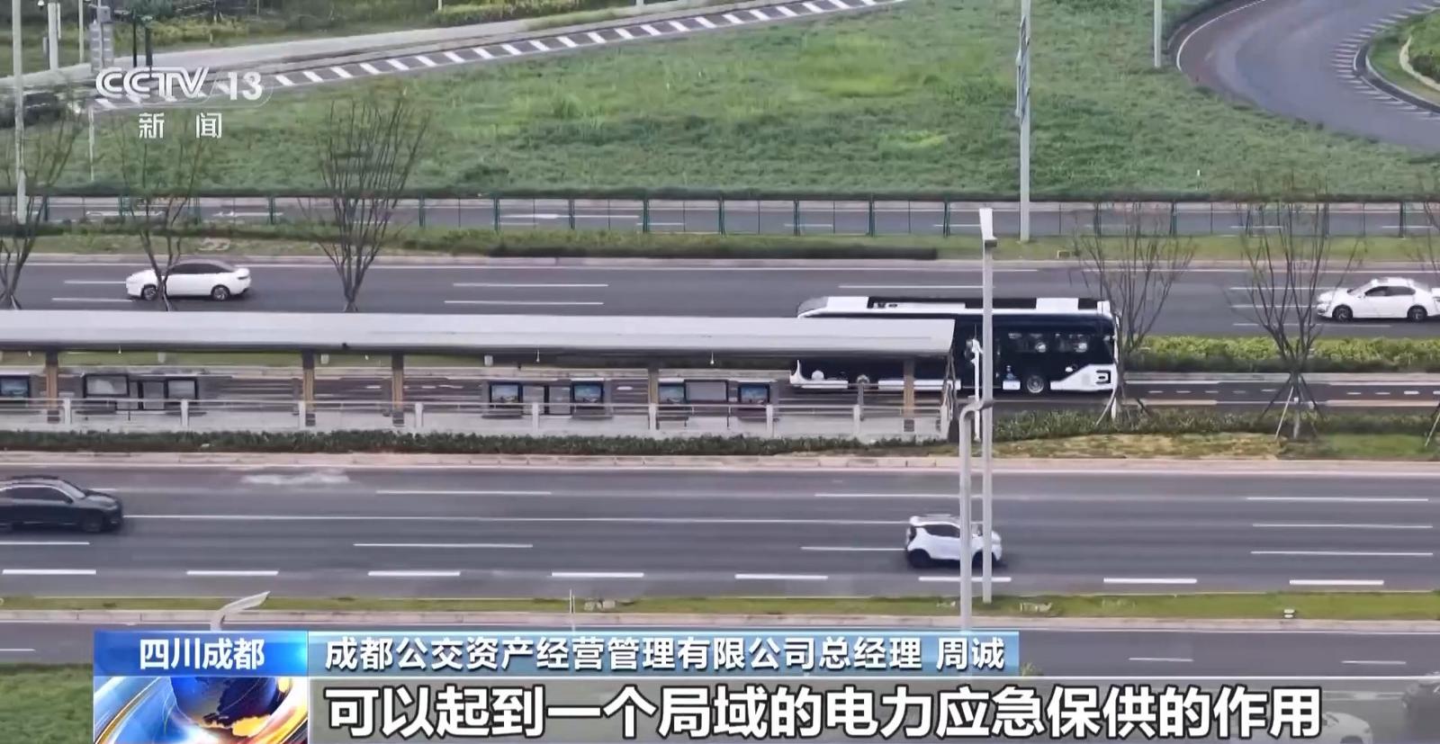 成都公交资产经营管理有限公司总经理 周诚:把我们这7000台公交车,从普通的交通工具跨界化身成一个个隐形的电力载体,在重大赛事、重大事件、重大活动,甚至是重大自然灾害来临的时候,可以起到局域的电力应急保供的作用。