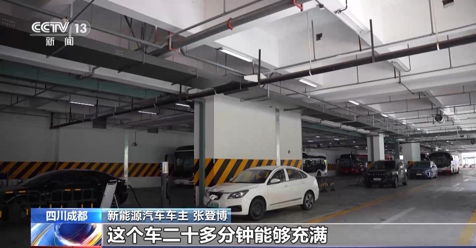 新能源汽车车主 张登博:外面充电会排长队,但在公交场站就不涉及这个问题,大车直接给小车放电,二十多分钟就能充满,所以这里更方便、快捷,也更省时间。