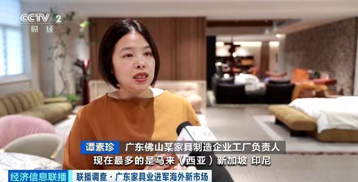 广东佛山某家具制造企业工厂负责人 谭素珍:现在最多的是马来西亚、新加坡、印尼、柬埔寨、越南、泰国。中国开放了免签,机票又便宜,他们会来中国吃中国的美食、旅游,顺便把他们的家具买齐。