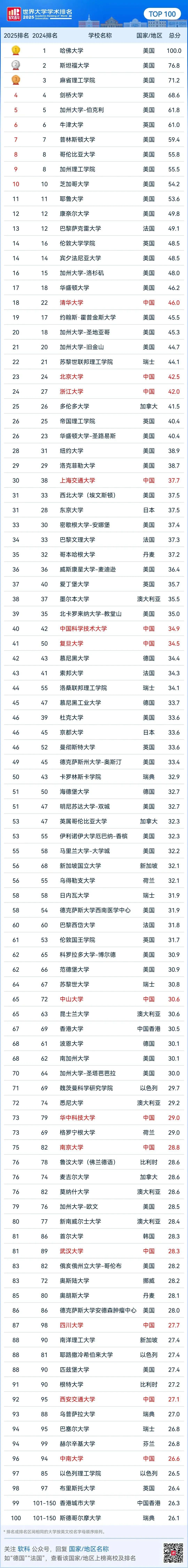 ●“2025世界大学学术排名”发布:内地13所高校位列世界百强,清华大学亚洲第1世界第18。