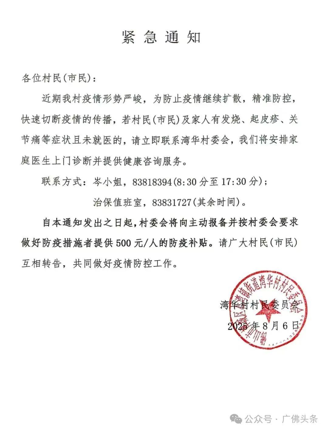 ● 广东佛山一地通知:做好防疫措施,每人可获500元补贴。