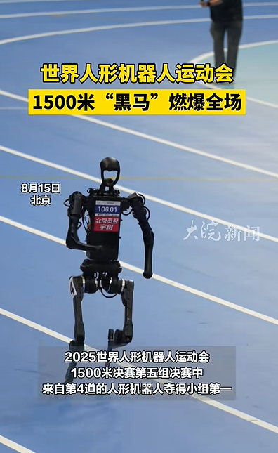 ● 世界人形机器人运动会首金诞生,灵翌科技获得了1500米比赛的第一名。