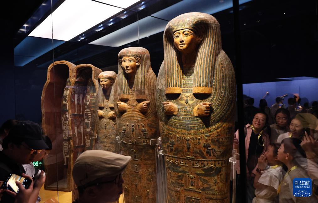 8月17日,观众在观看佩德阿蒙的彩绘人形棺。