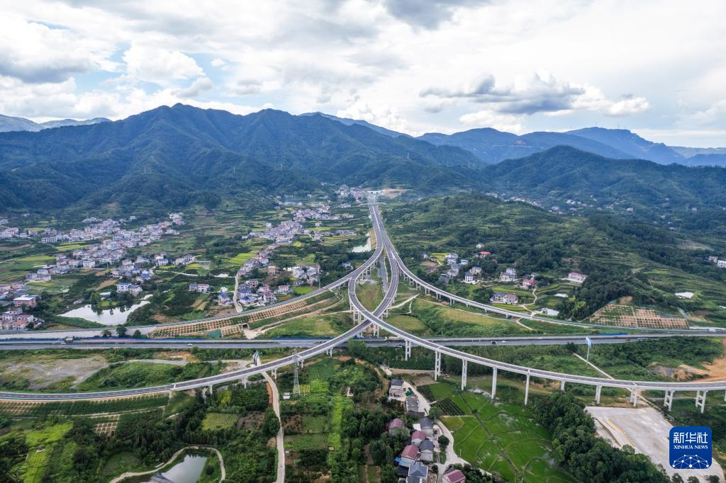 这是8月19日在湖南炉慈高速建设施工现场拍摄的慈利西互通枢纽(无人机照片)。