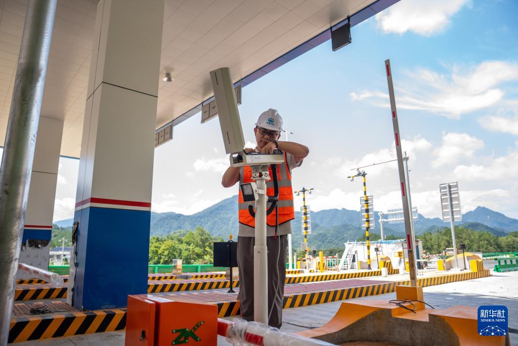 8月19日,在湖南炉慈高速维新收费站,中铁十局技术人员调试ETC设备。