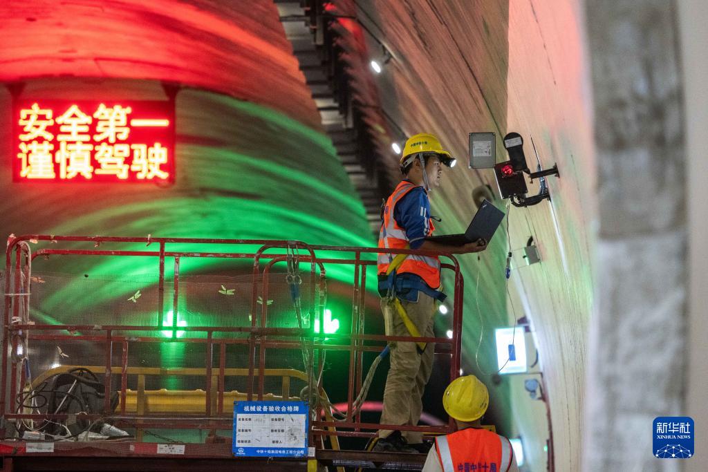 8月19日,在湖南炉慈高速太平镇隧道,中铁十局技术人员调试隧道环境监测设备。