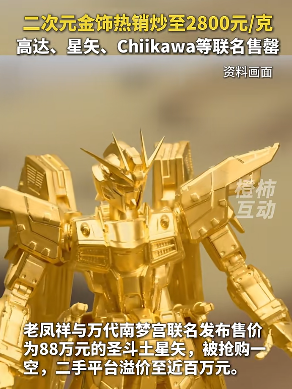 ● 二次元金饰热销炒至2800元/克,高达、星矢、Chiikawa等联名款售罄。