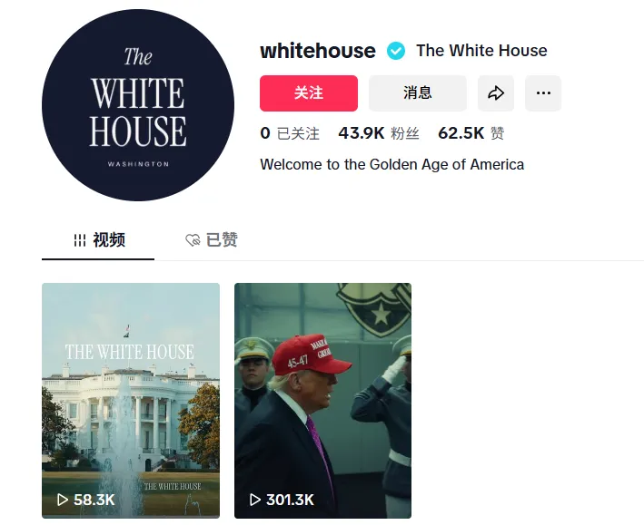 ● 当地时间8月19日,美国白宫正式推出官方TikTok账号。
