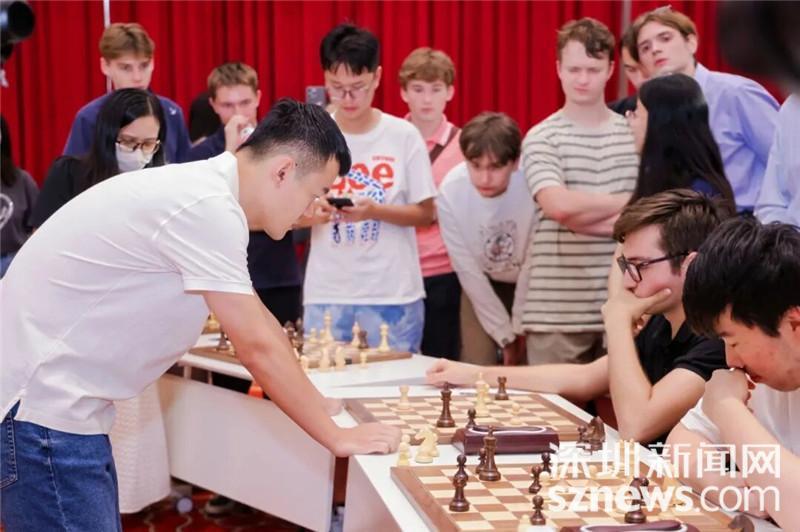 深圳新闻网2025年9月30日讯(记者 李云云 通讯员 农钰婷)“今年车轮战下了这么多场,这是我第一次输棋,对手实力都非常强劲。”9月29日,第十五届全运会国际象棋项目收官的第二天,中国首位国际象棋男子世界冠军丁立人来到深圳北理莫斯科大学,出席了以“棋坛之巅·智汇校园”为主题的活动,并与21位深圳北理莫斯科大学学子进行了一场精彩的车轮战。2个小时的激烈对弈结束后,丁立人称赞学子们实力不俗、学校“卧虎藏龙”,可见学校在国际象棋普及和教育工作取得的成效。